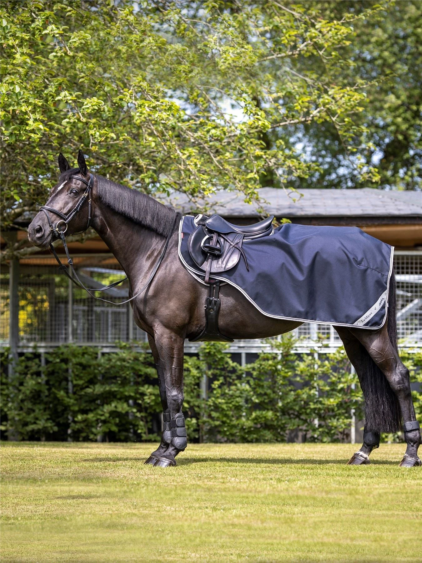 Perfect for fit and clipped horses in warm-up or slow work, the LeMieux Arika Exercise Sheet prevents chills and protects your horse�s coat from the elements. Cleverly cut to wrap around the saddle and under the saddle pad, it�s shaped to cover only where it�s needed, allowing free movement of the rider�s leg. Reflective safety strips on the hindquarters ensure your horse is seen in low light. Secured with an anti-lint hook and loop tape closure at the withers and a soft cord fillet strap at the rear, this exercise sheet won�t lift up or flap around. The breathable, waterproof lightweight outer and microfleece lining work together to disperse sweat during exercise and provide a barrier from rain, helping to regulate temperature and keep your horse dry. Technical Specification Waterproof breathable outer Microfleece lining Anti-lint hook and loop tape closure at withers Reflective safety panels Rear cord fillet string