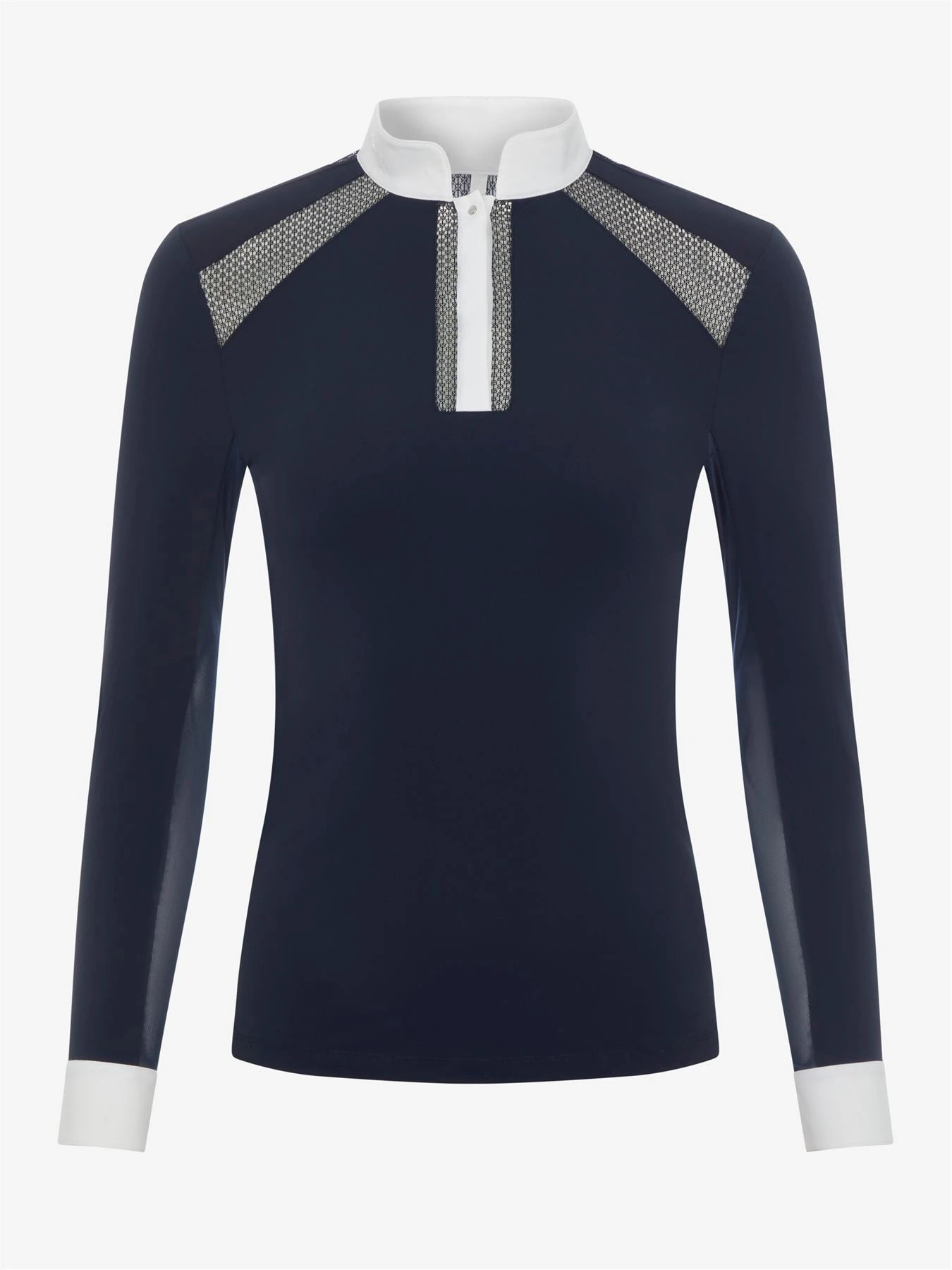 This performance competition shirt is ideal for doing your best when the heat is on. Lightweight breathable crepe delivers superior performance and comfort, even as an under layer.