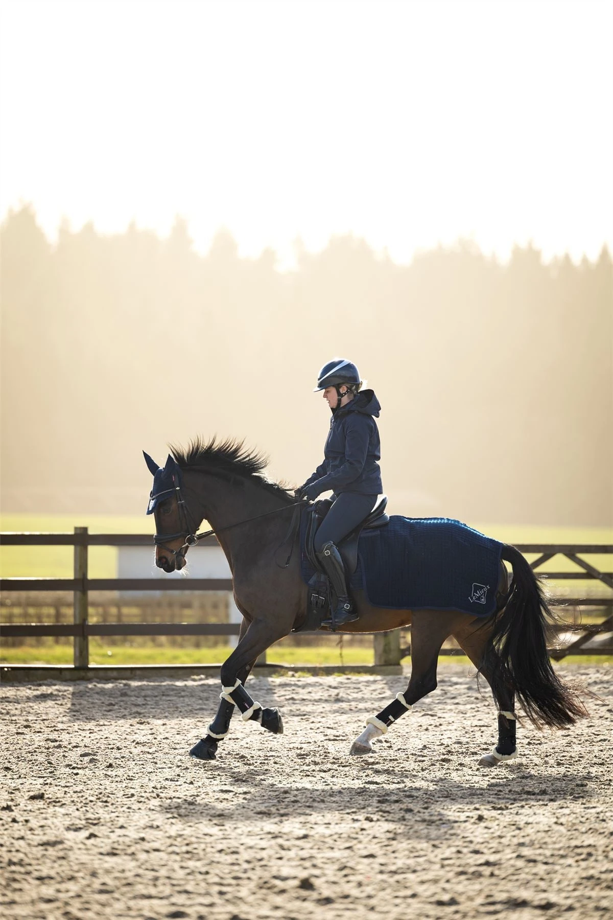 The multi-layered structure of the LeMieux Clima-Tek exercise sheet has a unique fabric blend, making it perfect for moisture management on the move. This structure controls muscle temperature during the cooling process, allowing for effective moisture wicking without cooling muscles too quickly making this rug perfect on chillier days. The hook and loop attachment straps attach to the girth straps, making it easy to attach and remove as you require during exercise.