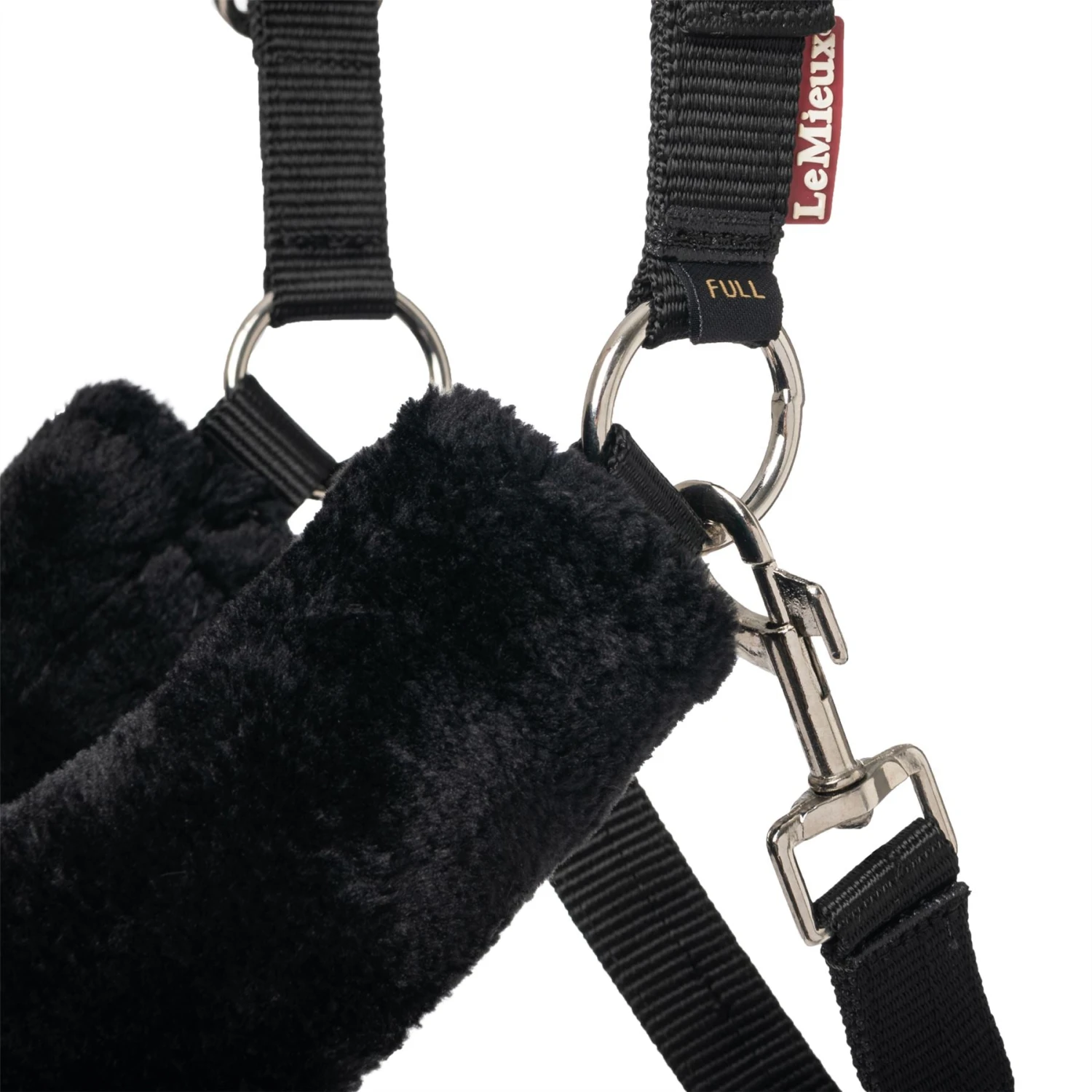 A high end, durable headcollar with a soft fleece lining for ultimate comfort all round. Adjustable on both sides of the poll and noseband for the perfect fit. Solid metal fastenings and LeMieux signature branding finish off the look of the headcollar.