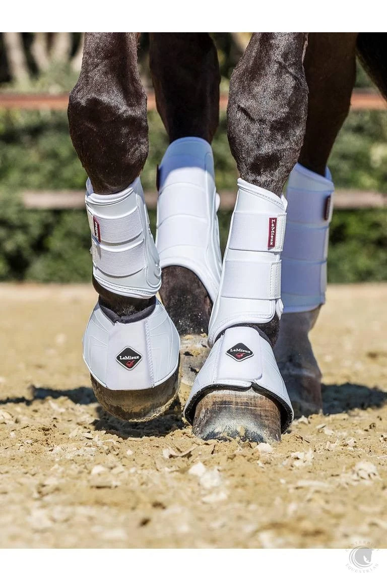 A new generation of brushing boot from LeMieux with greater all-round protection. Moulded PU outer shell offers superior support and shields against strikes, whilst remaining very flexible. These boots are strong enough to deflect an impact but not restrictive and rigid in any way. Unlike a regular brushing boot which relies on a single inside padded area, the ProShell boot offers 360 degree protection. Strategically placed vents ensure the release of excess heat and the soft perforated inner lining encourages the movement of air and is soft and kind to the horse’s leg. These boots are extremely versatile, tough enough to be used for turn out but smart enough to use at shows.