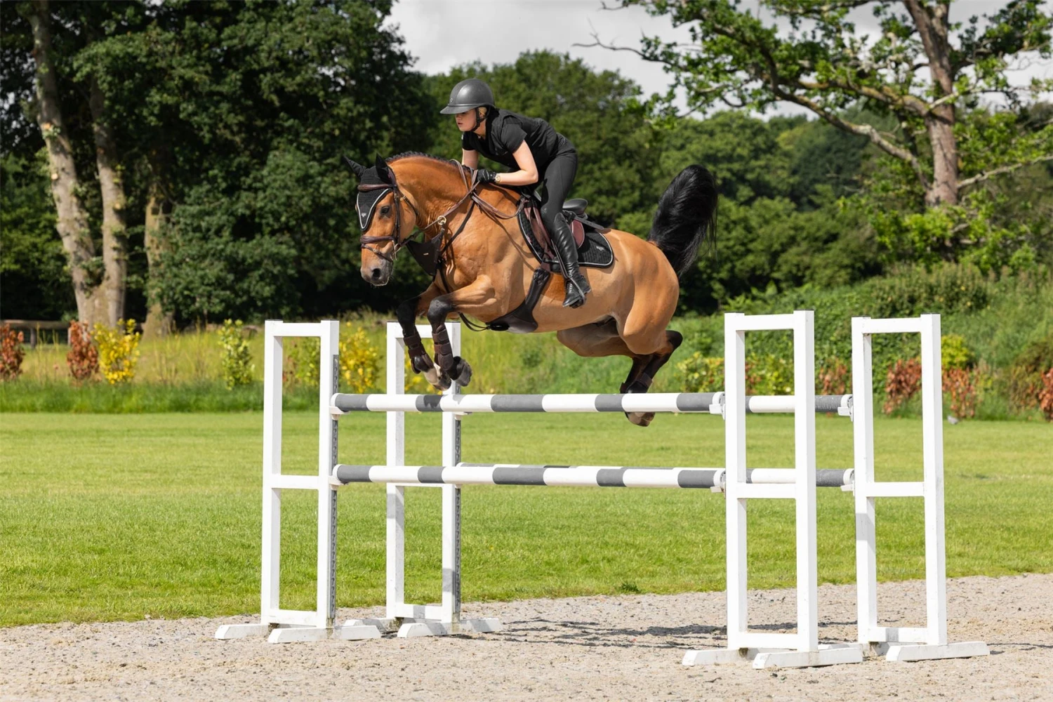 Now with a new sporty look and two layers of sophisticated cord edging, the Puissance Suede Close Contact Saddle Pad offers the very best of comfort and style. Available in two colours, this brick quilted suede pad is super soft and designed to fit a range of close contact saddles. Our game-changing bamboo lining regulates body temperature by wicking away sweat and moisture directly from your horse’s skin. It also minimises friction, keeping even the most sensitively skinned horses comfortable. For a unique finish, we’ve added a metallic badge to add some style to your horse riding wardrobe.