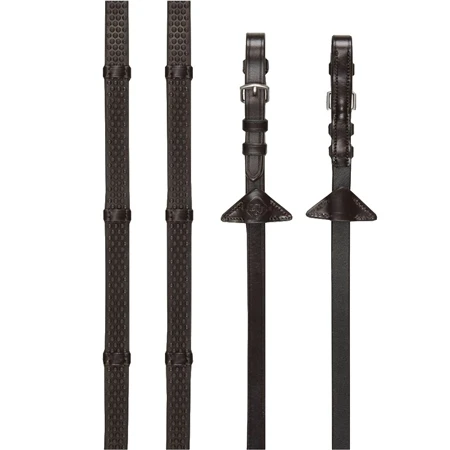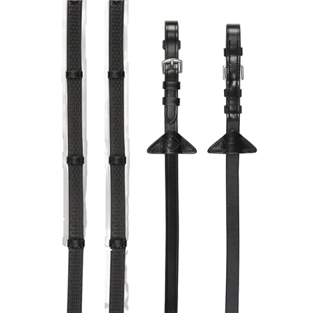 The LeMieux Soft Rubber Reins with Stoppers are lightweight,soft and flexible, making them incredibly comfortable and easy to use. The LeMieux Soft Rubber Reins with Stoppers are designed to be light in the riders’ hands, whilst the nylon lining prevents stretching and leather stoppers provide additional grip and even hands.