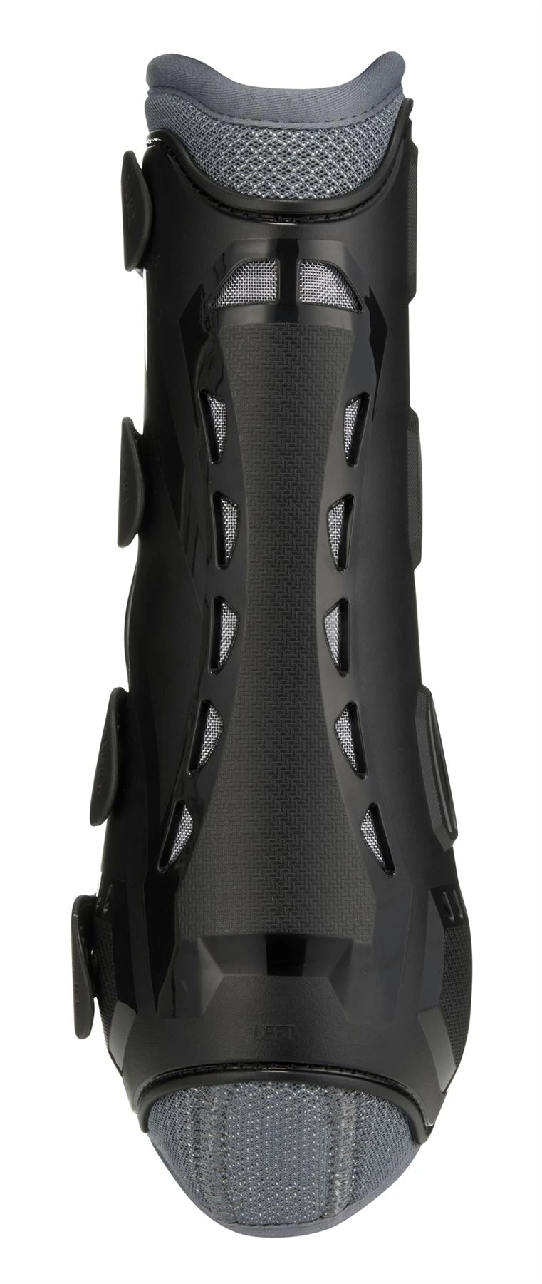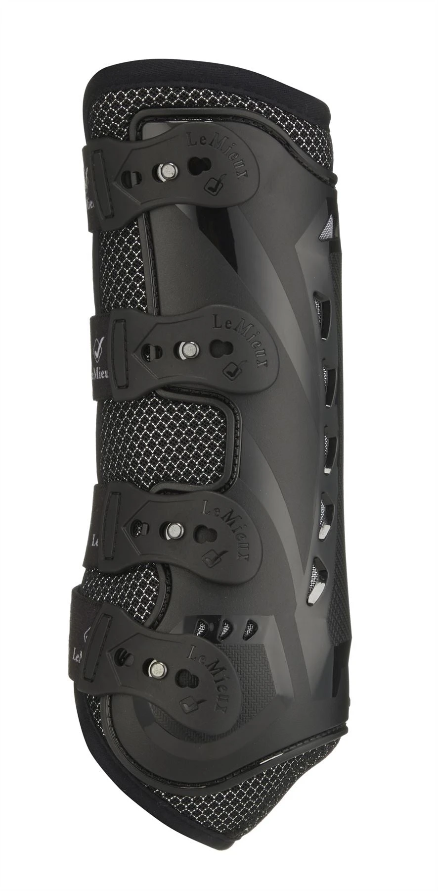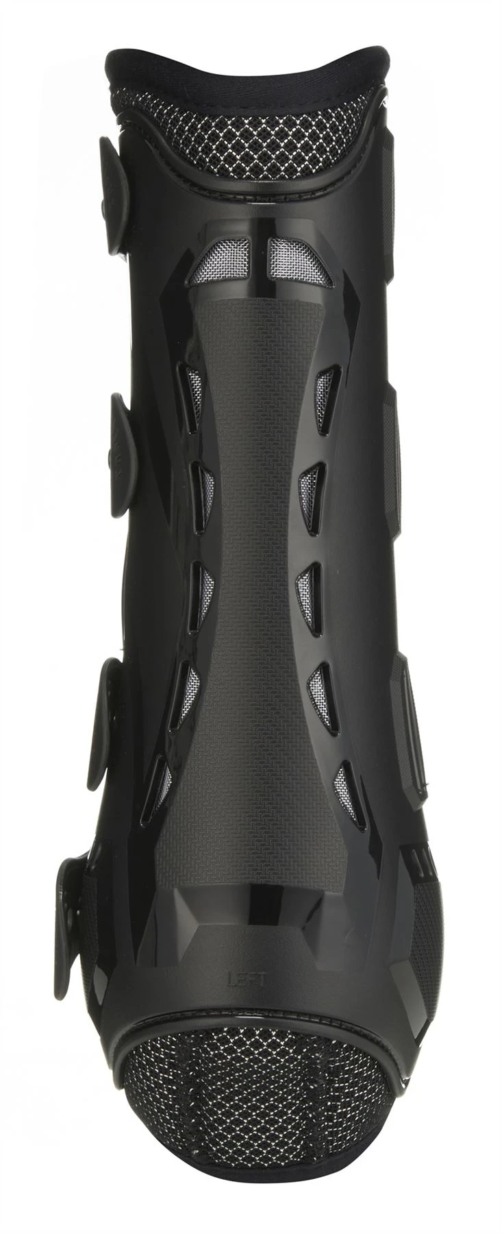 Multi layered micro-mesh gives a high compression factor offering shock absorption without the bulk. The individual cells that make up the 3D mesh each contain four perforations for the rapid dissipation of heat. A strong TPU moulded out shell contours the leg without compromising on strike protection. There are 12 vents down the back of the tendon and 6 over the fetlock joint to ensure the efficient circulation of air, making this boot highly breathable and lightweight. The elastane binding prevents rubbing and a stretch cotton inner lining reduces friction and wicks away any sweat build-up. Quick release end caps make for easy positioning & elasticated fastenings anchor securely for optimum stability. The smooth outer finish minimises the snagging associated with 3D mesh. The new Ultra-Mesh Snug Boot is a perfect all-round boot suitable for both schooling and light jumping, with emphasis on flexibility & breathability during work. Please note Snug Boots are interchangeable with hind boots having a wider inner lining so can also be used on front legs of large boned horses.