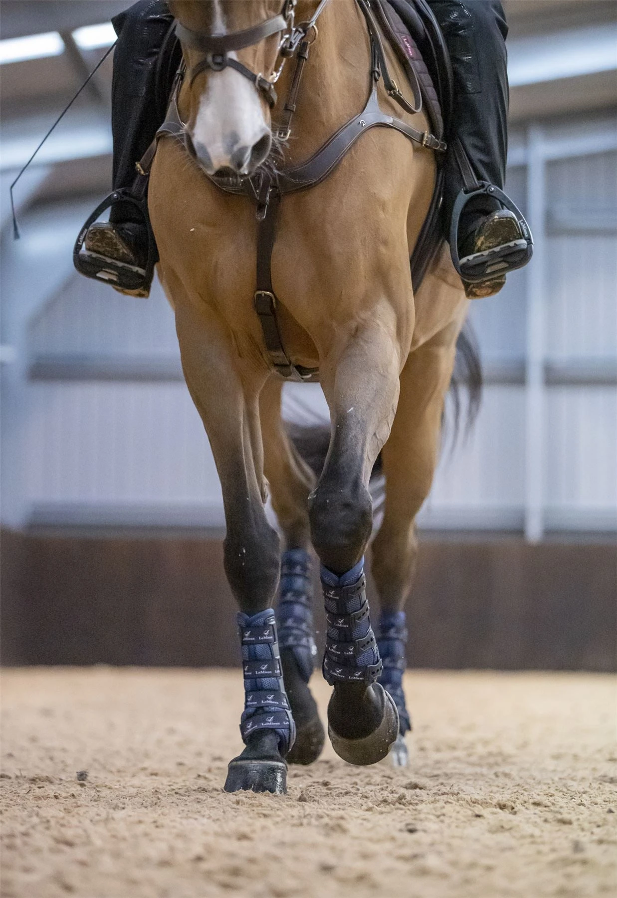 Multi layered micro-mesh gives a high compression factor offering shock absorption without the bulk. The individual cells that make up the 3D mesh each contain four perforations for the rapid dissipation of heat. A strong TPU moulded out shell contours the leg without compromising on strike protection. There are 12 vents down the back of the tendon and 6 over the fetlock joint to ensure the efficient circulation of air, making this boot highly breathable and lightweight. The elastane binding prevents rubbing and a stretch cotton inner lining reduces friction and wicks away any sweat build-up. Quick release end caps make for easy positioning & elasticated fastenings anchor securely for optimum stability. The smooth outer finish minimises the snagging associated with 3D mesh. The new Ultra-Mesh Snug Boot is a perfect all-round boot suitable for both schooling and light jumping, with emphasis on flexibility & breathability during work. Please note Snug Boots are interchangeable with hind boots having a wider inner lining so can also be used on front legs of large boned horses.