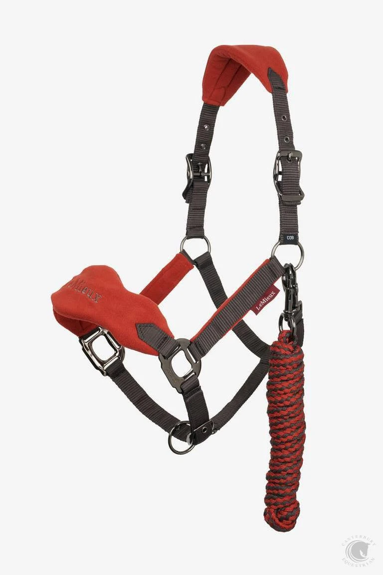 A lovely soft halter featuring fleece inserts at the poll strap and nose band. These fleece inserts ensure even pressure distribution and are fitted with extra padding for the greatest possible wearing comfort. Cheek straps lined with fleece. Multi adjustable at the curb and poll strap (adjustable from both sides) Now with solid nickel buckles & fastenings. Each headcollar comes with a matching lead rope. LeMieux embroidery completes the range.